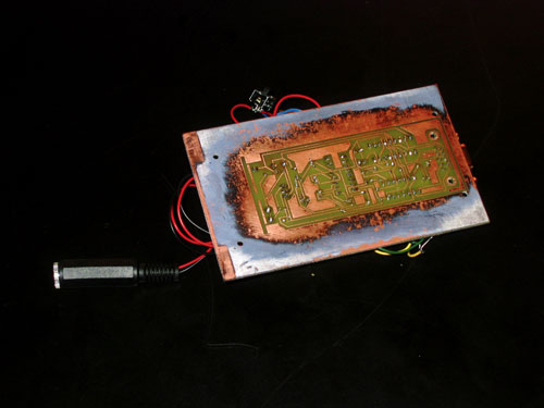 To create the board I used a laser-printer transfer technique. I intend to write my own instructions, but until then I refer you to these already existing guides: Concise, Verbose, and Mine.